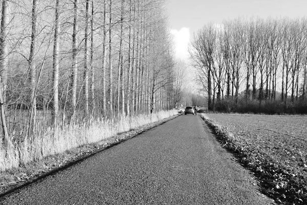 La chaussée est encore luisante des pluies de la nuit et quelques gouttes viennent nous rafraichir. Cela ne durera pas.