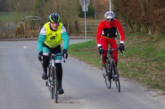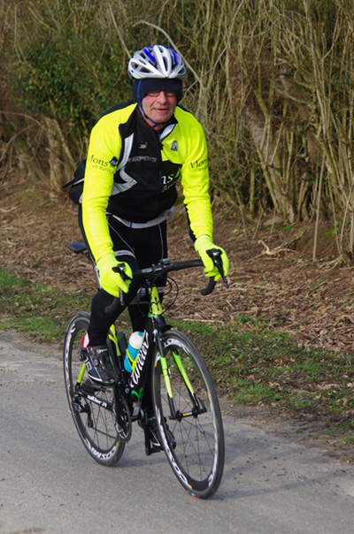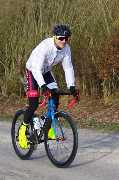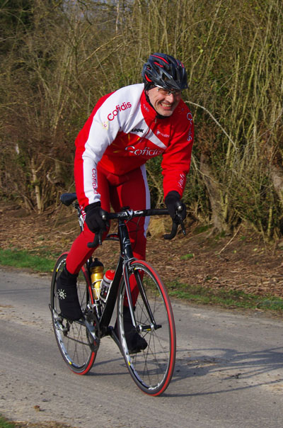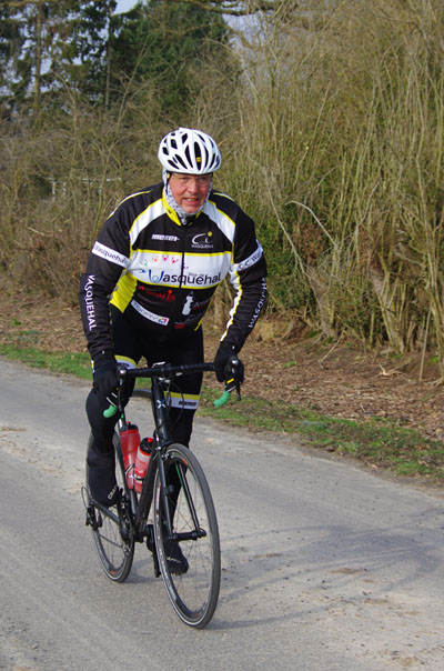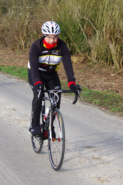 Le bandana rouge et blanc donne à ce sociétaire des Cyclos d’Ascq des allures de Père Noël. Bien que proches de Pâques, c’était presque de saison.