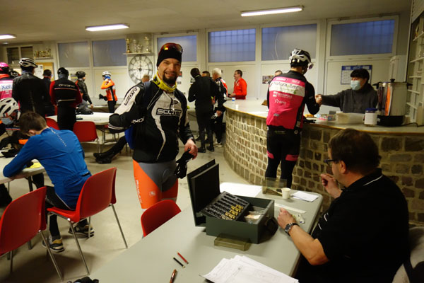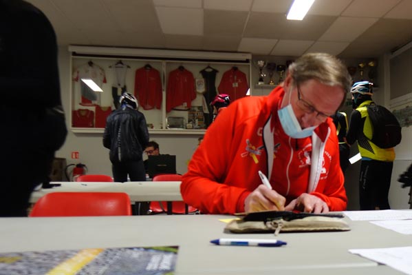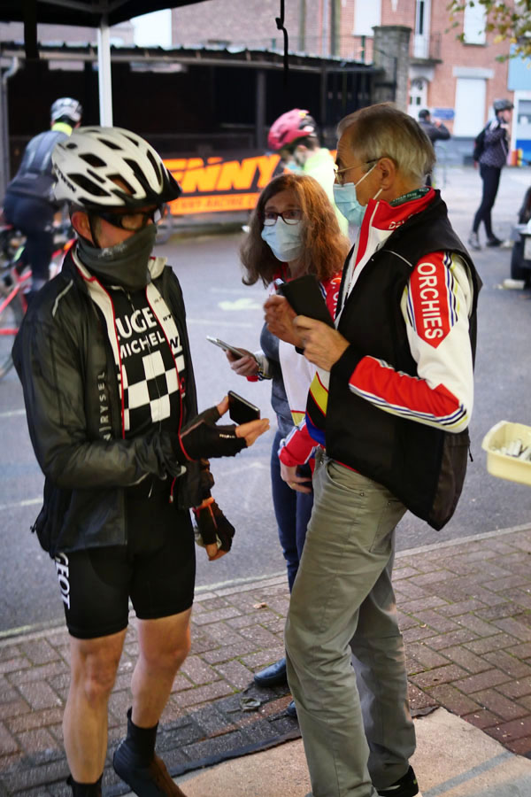 Les bénévoles qui assuraient l’accueil eurent fort à faire devant un flux d’inscriptions un peu inattendu. Un(e) photocopieur(euse) récalcitrant(e), (Ah l’écriture inclusive…) rendit impossible l’impression de bulletins d’inscription supplémentaires, si bien que l’on dût utiliser ceux de la Nuit des pavés pour permettre à chacun de s’enregistrer. Mais tout fut bien qui finit bien et à l’heure dite les départs groupés prévus purent avoir lieu sans oublier personne.