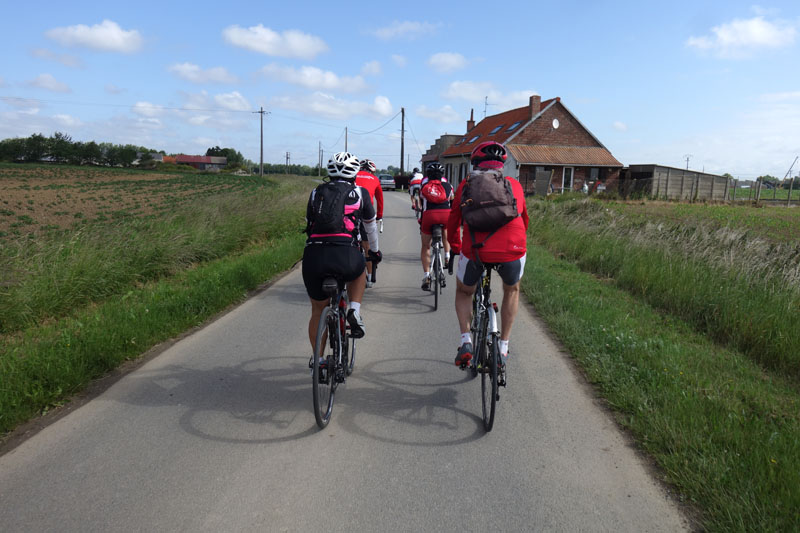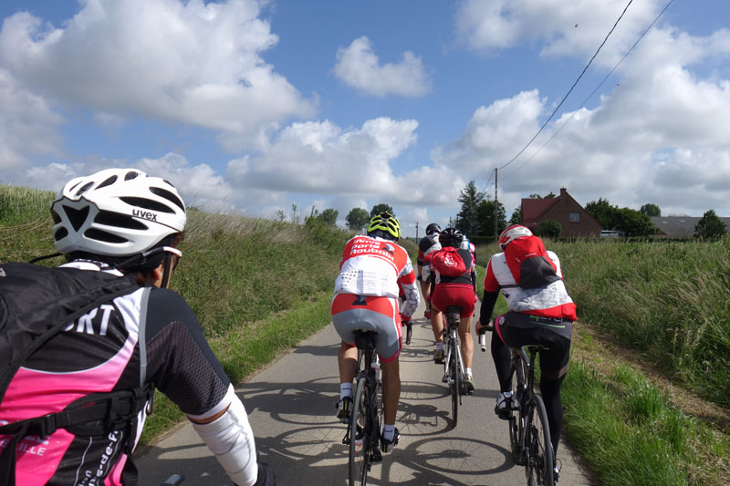 On devine le clocher d’Herzeele, but de cette sortie du jeudi organisée par le Velo Club de Roubaix Cyclotourisme.