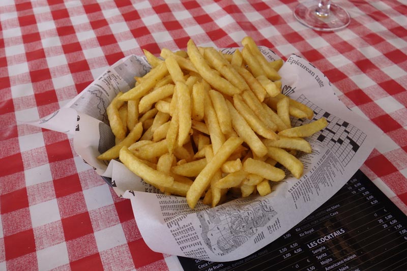 A l’arrivée, portion de frites, soupe, sandwich et boisson.