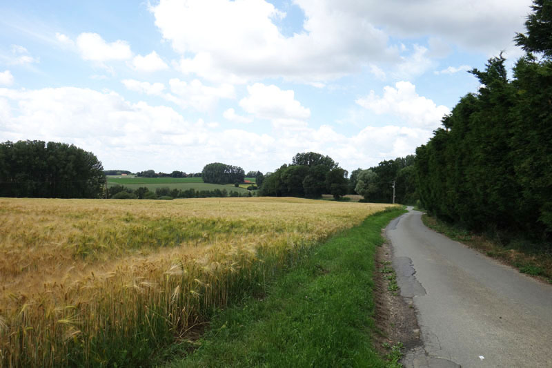 Passé Bailleul, la petite route qui longe la voie ferrée et permet d’éviter la grand route en direction d’Armentières.