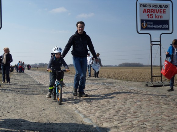 Il y a bien sûr des cyclistes. Certains, clones de leurs idoles, arborant tenues colorées et vélos high-tech côtoient de vieux randonneurs aux sacoches usagées. Des cyclistes urbains poussent leurs V-Lille jusque sur les pavés. Plus loin, ce sont des petites familles venues, un parent devant, l’autre derrière.