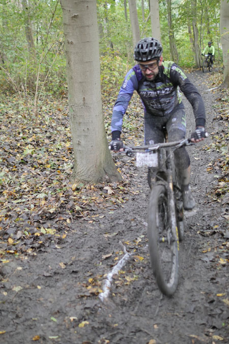 Le tracé était particulièrement soigné, exploitant toutes les possibilités du terrain pour nous proposer un parcours sinueux à souhait en sous-bois, exigeant en matière de pilotage d’autant que racines et sol gras poussaient généreusement à la faute.