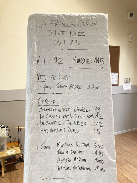 Des quatre distances proposées en VTT, j’hésitais entre le 40 et le 50 km. Parvenu au ravitaillement, j’optai finalement pour le 40 car si le circuit n’était pas intense en termes d’efforts, il comportait de nombreuses monotraces que je ne parcours jamais à grande allure.