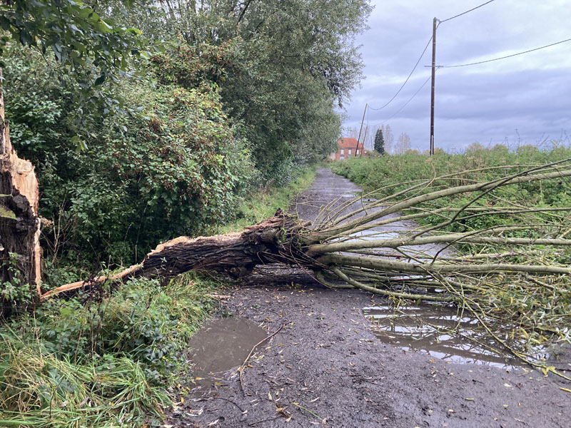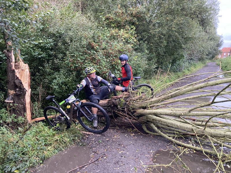 Pas vraiment d’autre solution que de descendre de sa machine pour enjamber ce saule déraciné.