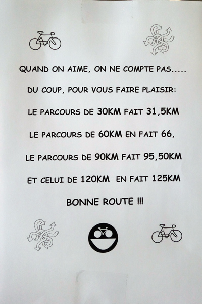 Si dans sa grande majorité le parcours emprunte des routes asphaltées, il rompt parfois avec ce revêtement aseptisé pour nous entrainer sur des secteurs pavés ou des chemins agricoles ou forestiers par moments à la limite du VTT. Amusant, même si cela m’a de temps en temps provoqué quelques craintes de crevaison.